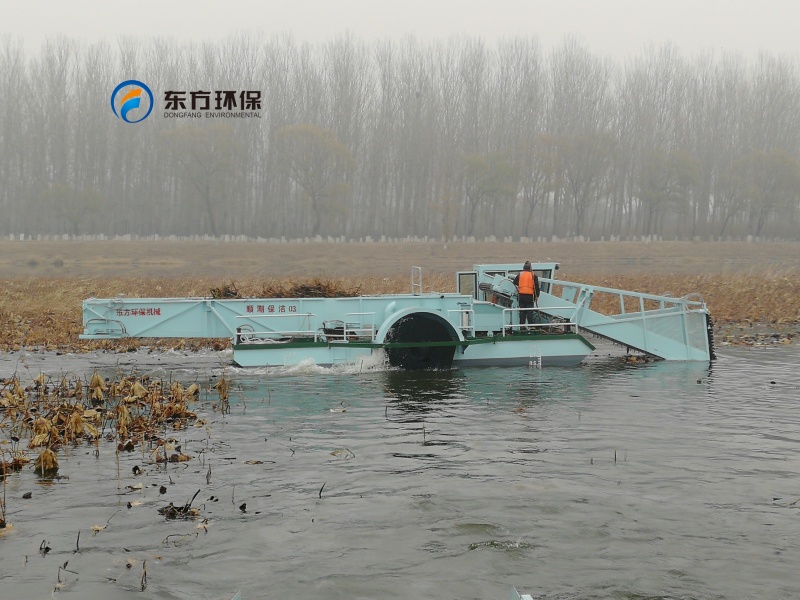 山東東平湖管理局購買的DGLW110型全自動(dòng)蘆葦收割船